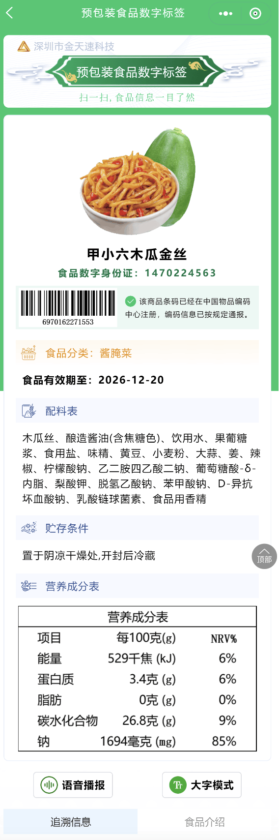 平台还融合“AI防伪”和“区块链溯源”双沉机制,对数字标签进行及时取智能识别,无效防备数据取伪制,确保消息实正在、完整。同时,既合适国际食物标签数字化成长标的目的,也帮帮企业降低合规成本,为监管机构供给靠得住数据支撑。