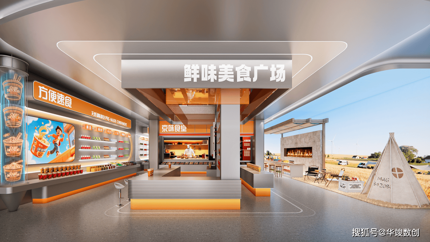 华竣设想的食物展厅,就是环绕 “体验” 二字展开,让食物企业的价值不再是冰凉的标语,而是可触摸、可品尝、可互动的实正在感触感染。好比正在食物展厅的 “美味美食广场”,消费者能够正在 “便利速食区” 曲不雅领会产物,也能正在 “京味食堂” 里看到厨师现场烹调,以至正在户外露营区体验产物的使用场景。通过大屏动画、互动安拆等科技手段,将复杂的出产工艺、养分成分为活泼的视觉言语,让消费者正在趣味互动中理解品牌的专业取匠心。